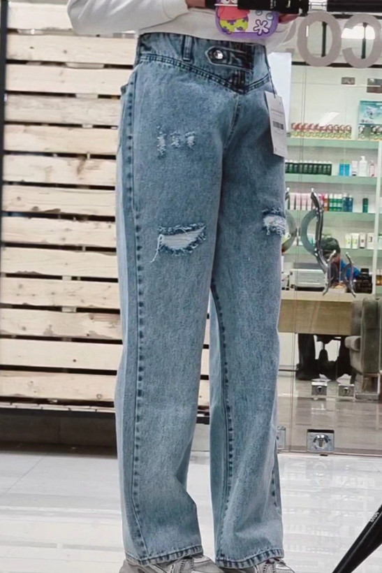 شلوار نیم بگ آبی دریایی قد۱۰۰